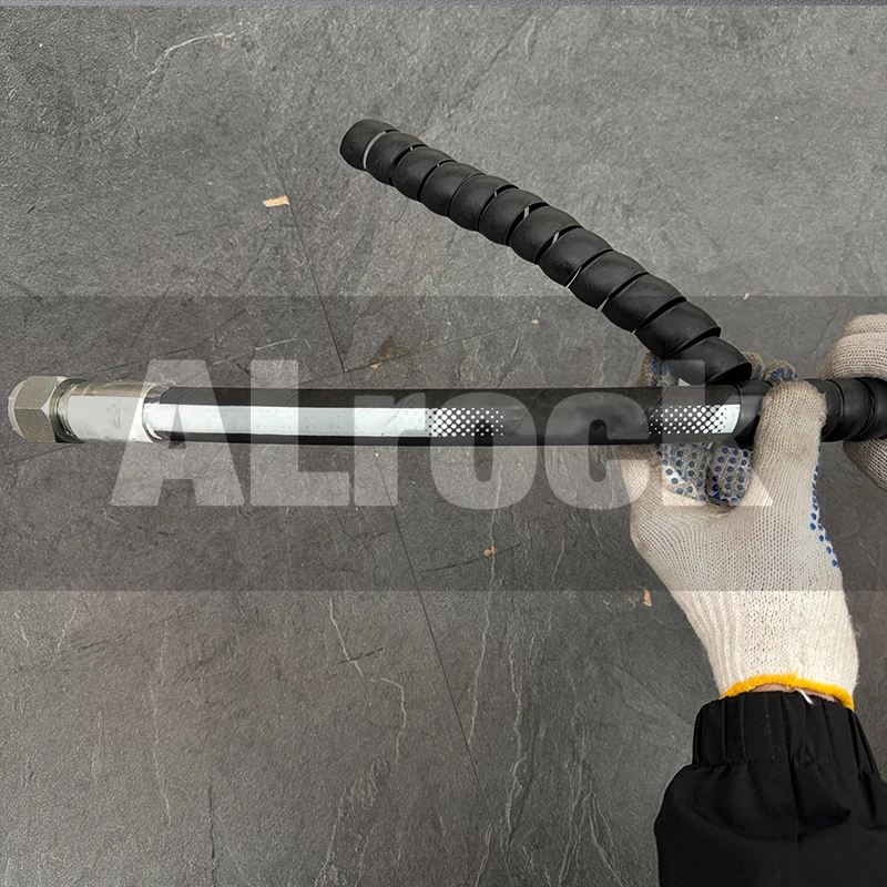 Fourth, the NBR inner tube is oil-resistant and compatible with all common hydraulic oils (ISO VG 32/46/68). Above all, this prevents tube swelling or degradation, maintaining flow rate stability for long-term use. Fifth, the wide temperature adaptability (-40°C~120°C) ensures reliable operation in freezing high-altitude mines and high-heat underground drilling environments. On top of that, the stainless steel braid resists rust and corrosion from acidic slurry, further enhancing durability.